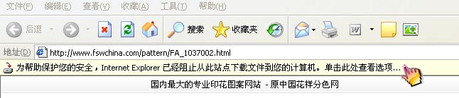 | 遇到下載不能的情況2:如果在下載預(yù)覽圖操作完成后沒(méi)反應(yīng)的,請(qǐng)注意IE瀏覽器地址欄下方上是否出現(xiàn)以下提示,請(qǐng)點(diǎn)擊該提示信息,然后選擇‘下載文件’,待恢復(fù)后重新選擇‘預(yù)覽圖下載’即可解除IE下載限制。如沒(méi)注意到是否有提示出現(xiàn),可重新進(jìn)行下載操作,到最后沒(méi)反應(yīng)的時(shí)候注意瀏覽器地址欄下方是否出現(xiàn)提示,如還不能解決請(qǐng)聯(lián)系我們的客服QQ,我們會(huì)協(xié)助您處理. |