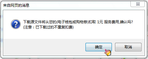 | 第三步:點(diǎn)擊按鈕會(huì)彈出確認(rèn)下載提示框,點(diǎn)擊‘確認(rèn)’即可(點(diǎn)擊后將會(huì)從您的購(gòu)物券中扣取一元的服務(wù)費(fèi),如購(gòu)物券金額不足將從電子錢(qián)包中扣。 |