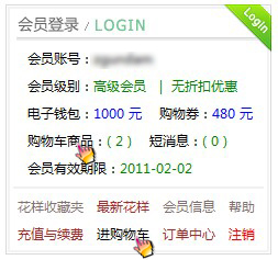 | A:當(dāng)會員挑選好合適的花型,并需要購買該花型的分色稿時,可以將該花型存放于購物車?yán),并通過購物車下購買訂單和進行分色服務(wù)的費用結(jié)算。下面是購物車的使用說明: |