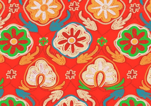 柬埔寨絲綢多樣的花紋圖案、大膽的構思設計,以及豐富的色彩和種類都令人吃驚,柬埔寨的花鳥風月都被精致地織入絲織品中。那迦的鱗片以及互相纏繞在一起的那迦圖樣是最基本的,將茉莉花的花朵、榴蓮的尖刺、閃亮的星星、孔雀、蝴蝶、雨蛙等自然的景物和吉祥的心愿組合在一起祈禱豐收的祈愿也被織入了絲織品之中。與印尼的紗線扎染織物相同,柬埔寨的絲綢業(yè)是經過海上的絲綢之路由印度傳來的,同時也受到通過陸上絲綢之路傳來的阿富汗等西亞國家絲綢的影響。