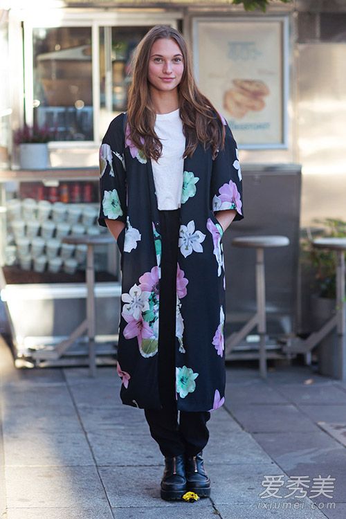 雖然黑色風(fēng)衣是經(jīng)典必備的,不過年年穿也看膩了,加點(diǎn)印花元素就新穎多了,搭配白T恤和黑褲子也顯得很潮。