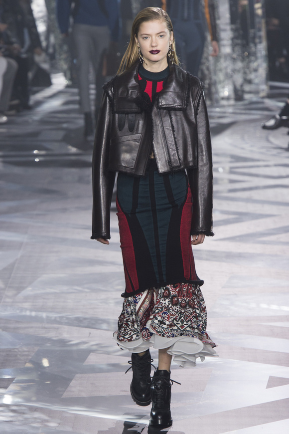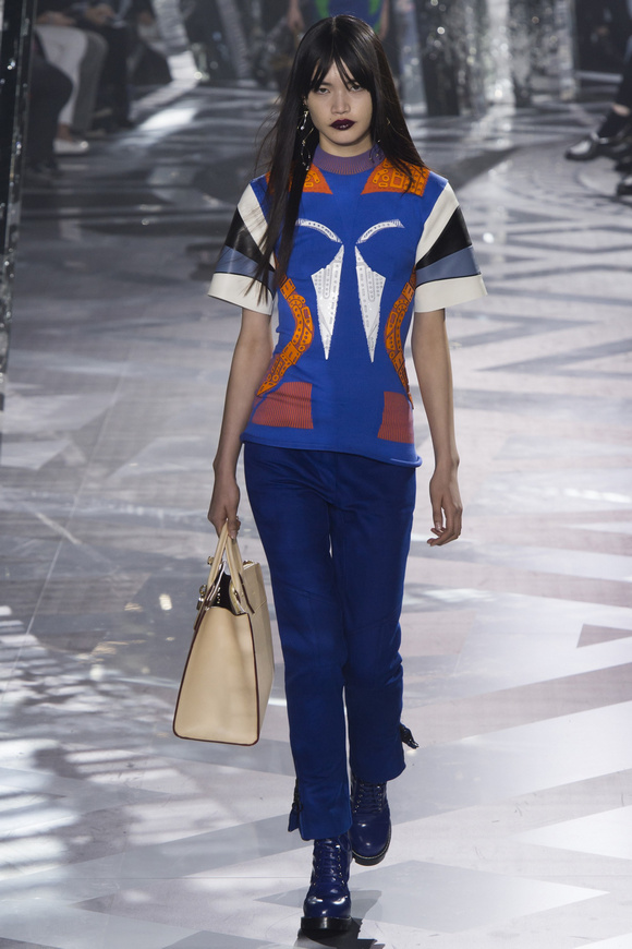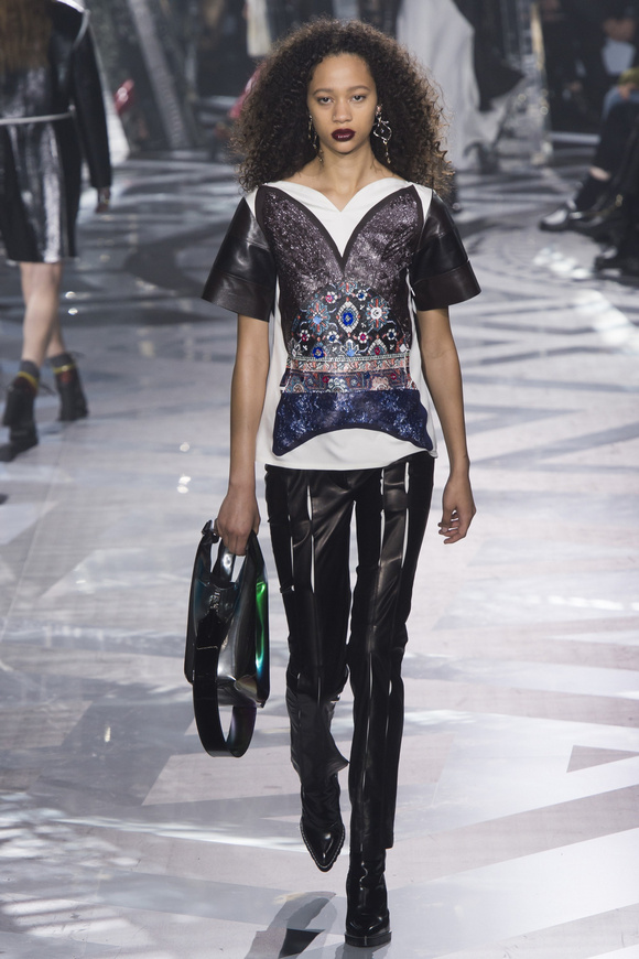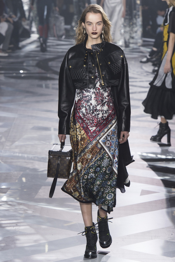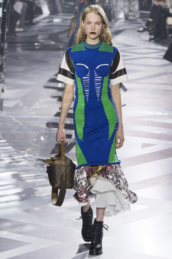 旅行,一直都是Louis Vuitton永恒的主題。鏡子所制成的圓柱,使用水泥以及破碎的鏡片,是對(duì)于Justin Morinrsquo;s ldquo;融化之骨ldquo;的重新演繹,本季,Nicolas Ghesquiegrave;re用ldquo;未來(lái)考古學(xué)rdquo;概念,發(fā)現(xiàn)了未來(lái)的考古之旅。秀場(chǎng)布置得如同在水底發(fā)現(xiàn)的亞特蘭提斯城般,失落的未來(lái)城市。這是一個(gè)由破碎的鏡子所組成的城市,半頹半傾,但破碎的廢墟中充斥著高科技的未來(lái)。