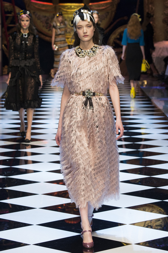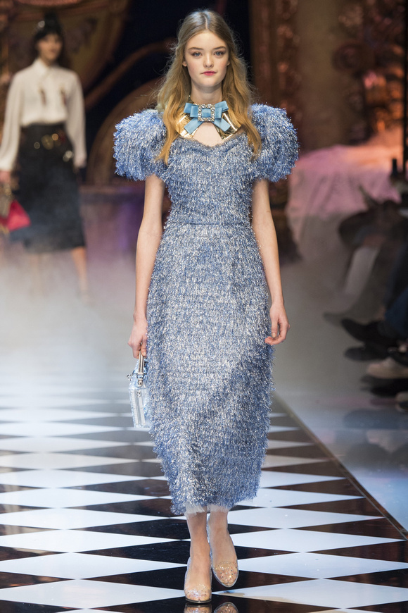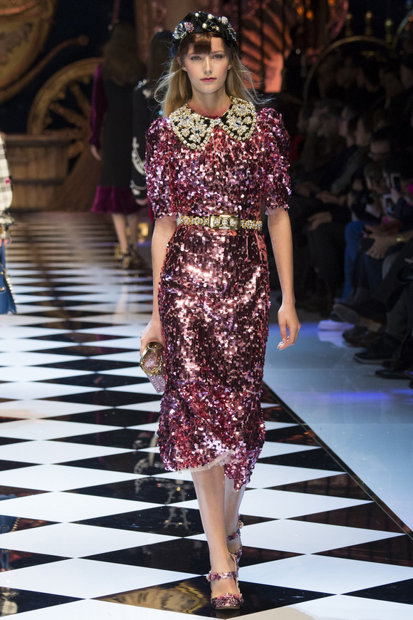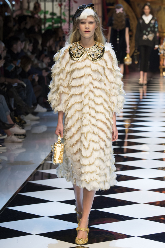 Dolce amp; Gabbana 杜嘉班納 一直很喜歡她,喜歡她色彩艷麗的印花,喜歡她那閃閃發(fā)亮的裝飾,今季她繼續(xù)運用大量的閃片、配合剪裁超大的黑色男裝外套、也有30,40年代的泡泡袖子。Dolce amp; Gabbana 已經(jīng)沒有必要令每個成年人都為他著迷,時裝,就是需要個性!