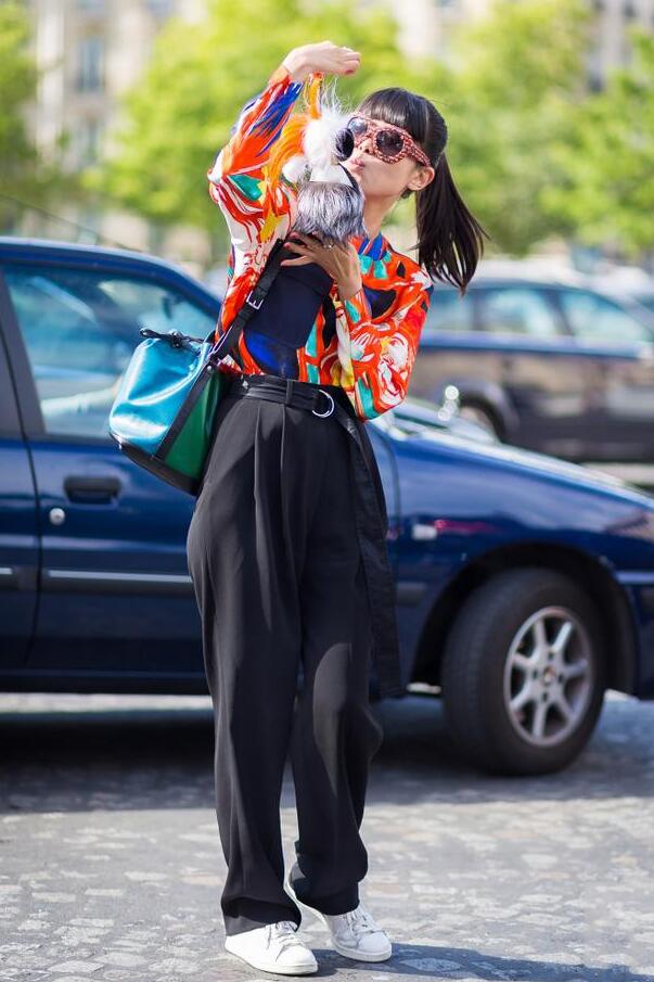 說到印花裝的造型感,必須承認(rèn)的一點(diǎn)就是:分件式的穿法絕對(duì)要比一件式的更加時(shí)髦別致。