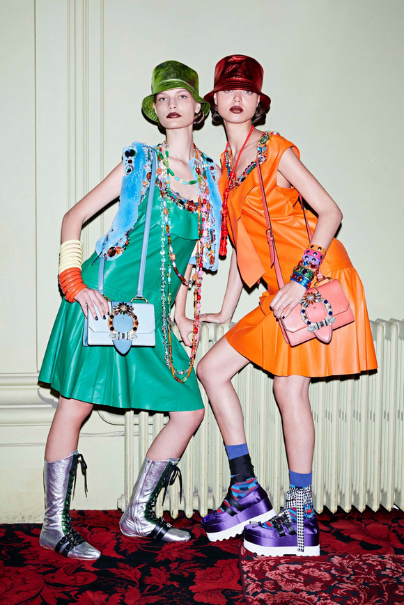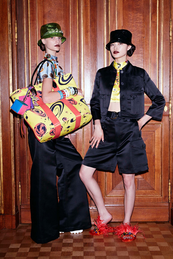 Miu Miu 繆繆這一季,跟以往一樣,無(wú)論從T恤、裙子還是編織草帽,都是強(qiáng)調(diào)印花與裝飾。這些元素未必能引起90零后的懷舊感,因?yàn)樗麄儗?shí)在太年輕了。但這完全一點(diǎn)都沒(méi)有關(guān)系,她們看起來(lái)就像一系列色彩繽紛的度假服飾系列。