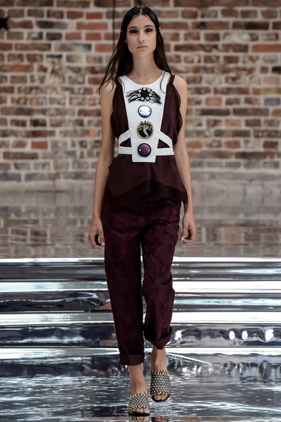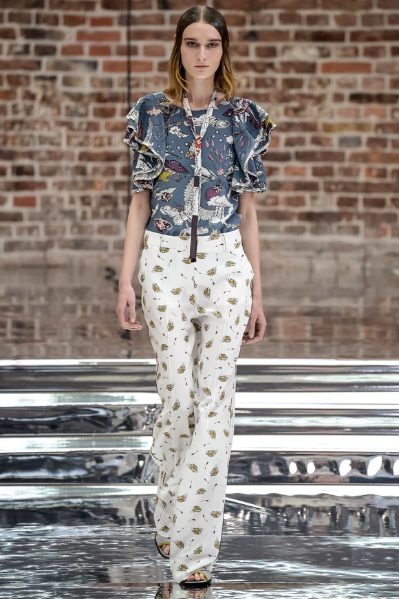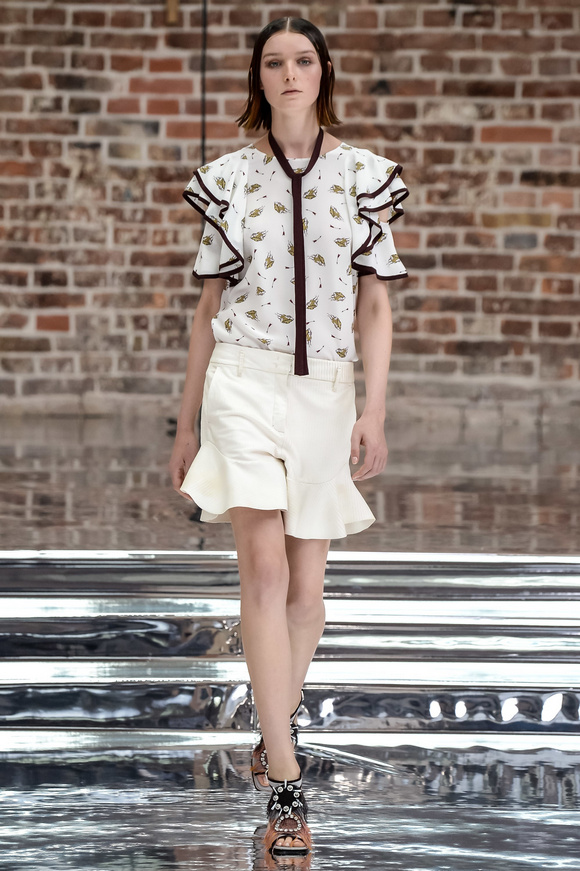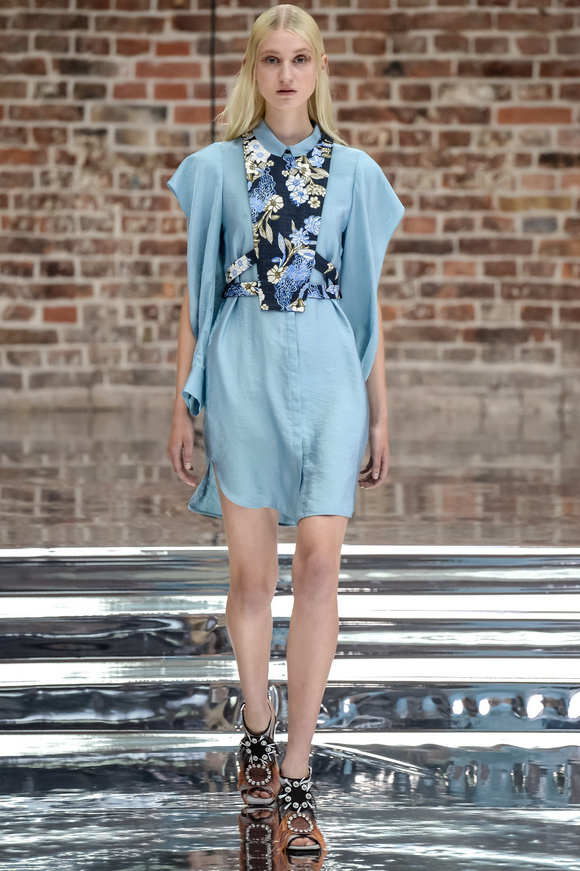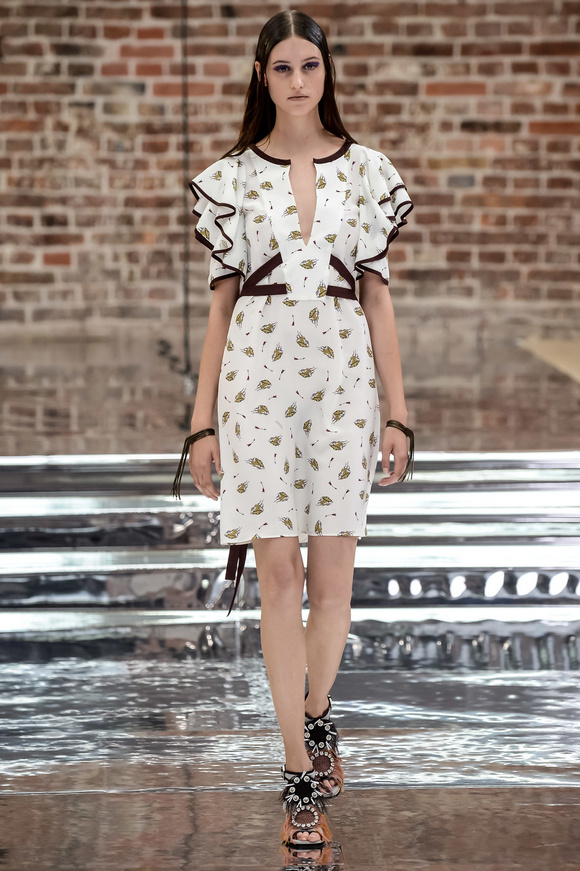 Schumacher 淑美赫 2017春季的看點(diǎn):輕浮、閃亮的胸針,荷葉的邊足夠吸睛。她始終以其獨(dú)特的方式巧妙地打破時(shí)尚傳統(tǒng)并且樹立了與眾不同的風(fēng)格,這其中融入了Dorothee Schumacher本人的幽默、輕松的生活態(tài)度以及她的心血。設(shè)計(jì)師通過對(duì)自我的認(rèn)識(shí)將其豐富的生活融為一體,并注入到設(shè)計(jì)當(dāng)中。