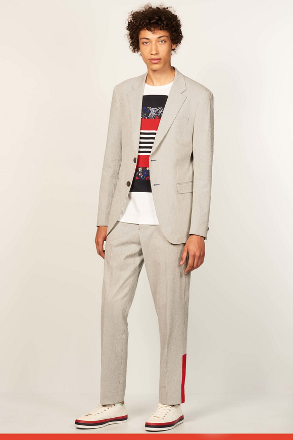 2017年春季系列,是對上世紀七十年代ldquo;適合運動穿著服飾rdquo;風潮與ldquo;常春藤聯(lián)盟rdquo;風格的回眸致敬,并將版型輪廓作了再造,剪裁比例作了更新,且在細節(jié)上彰顯創(chuàng)意的可能性。印花是本季貫穿始終的元素。碎花、扎染印花、線形圖案給予本季意想不到的新鮮視覺呈現(xiàn),還有通過拼縫來展現(xiàn)輪廓,并添加了圖案拉鏈元素。套裝與睡衣既自然舒適又符合裁剪審美,且顛覆傳統(tǒng)佐以熱帶植物元素及短褲來作混搭。外套通過走運動范兒倍顯休閑,譬如套頭衫與梭形外套。破邊牛仔衣則通過短式裁剪來顯得與眾不同,以此來對工裝致敬。針織衫看似常規(guī),但在制作工藝上有極大創(chuàng)新。襯衣,卡其褲,這些都是Tommy Hilfiger風格形成的根基,通過削減超大面料,針織polo衫領(lǐng)口或者側(cè)條紋,以展現(xiàn)當代簡約剪裁與成衣結(jié)構(gòu)。每款成衣都佐以配飾,包括漁夫帽,皮革手提袋,讓人心動的新型膠底鞋,以及繩索切邊涼鞋