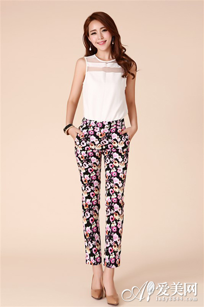 顏色繽紛的印花九分褲,夏日搭配背心非常時尚休閑。推薦純色、雪紡、復(fù)古系列的印花背心搭配。