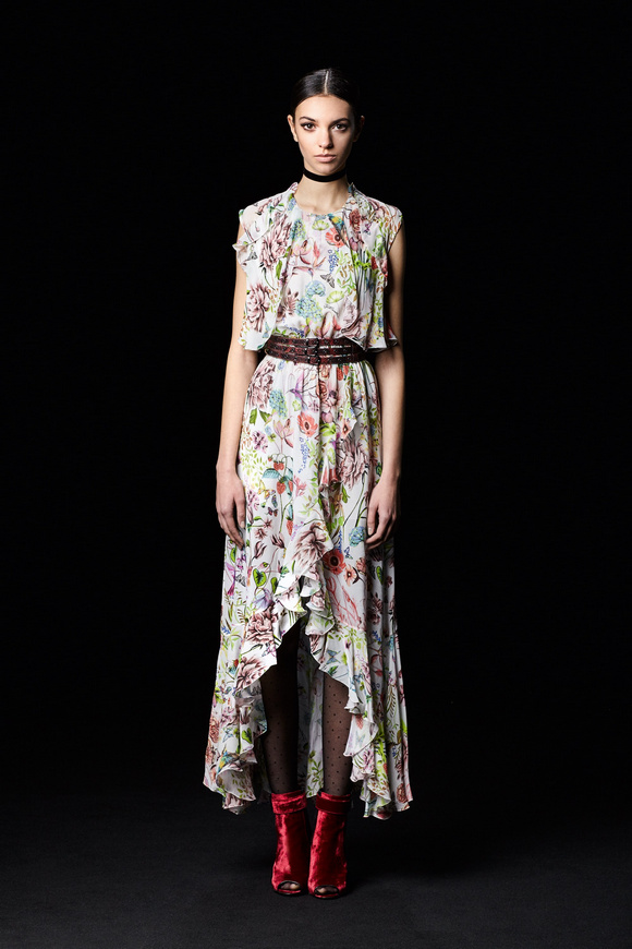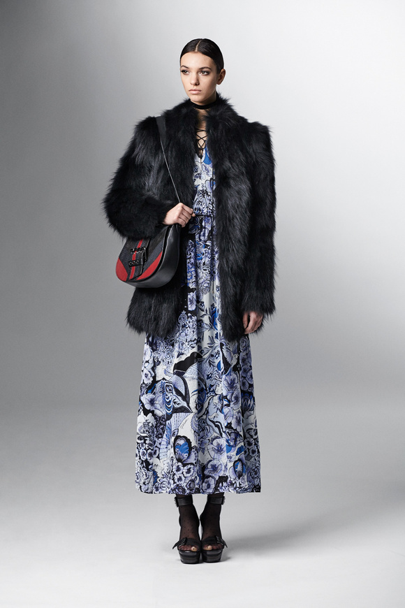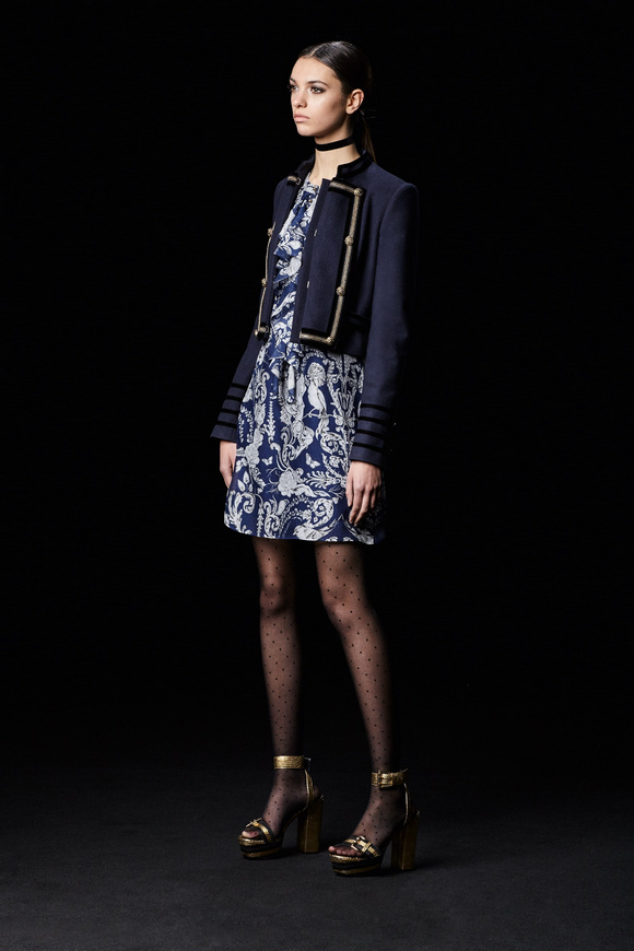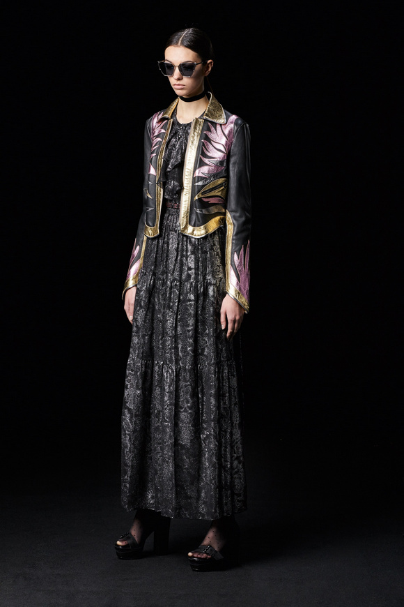 Just Cavalli在這一季的服裝中,大量運(yùn)用了精美的手繪藝術(shù),以及戈布蘭掛毯的復(fù)雜提花花紋圖案,雪紡禮服搭配軍事風(fēng)格的短夾克,或是短斗篷搭配黑色米妮裙,都是令人耳目一新的設(shè)計(jì)。