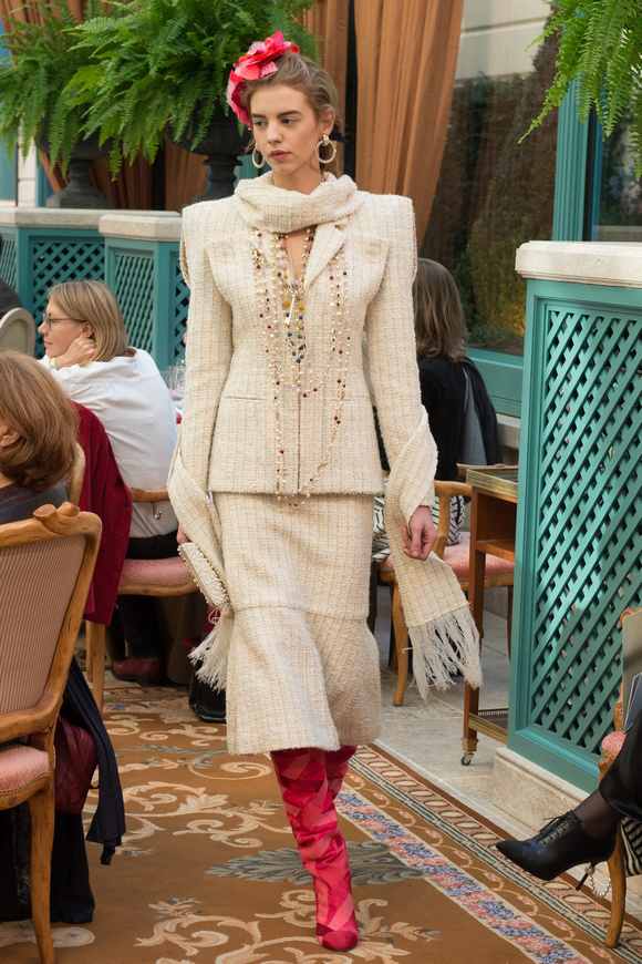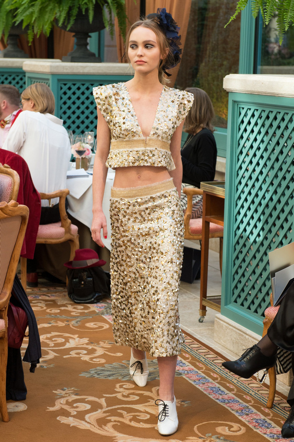 金燦燦的閃片,甚至連羽毛都灑了金粉,Chanel的首席設(shè)計師卡爾middot;拉格斐,將20,30年代的設(shè)計元素都揉合在一起,他說,這就是現(xiàn)代的東西。
