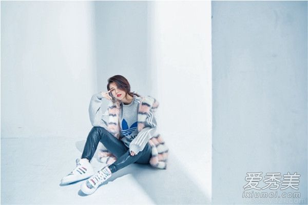 甜美運(yùn)動(dòng)風(fēng),不太過甜膩,運(yùn)動(dòng)LOGO衛(wèi)衣好時(shí)髦,套上一件粉色皮草背心,就不會(huì)太男孩子氣。