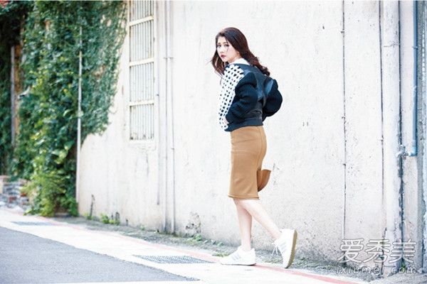 傘裙穿出韓妞俏皮風(fēng),點(diǎn)點(diǎn)襯衫活潑可愛,毛絨棒球外套中和傘裙的甜美,搭上球鞋、紳士鞋都好看。