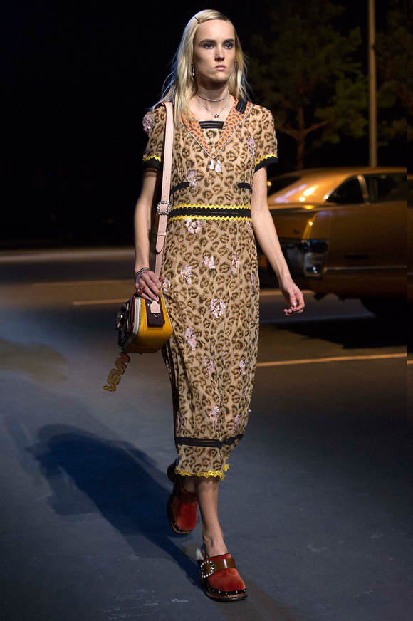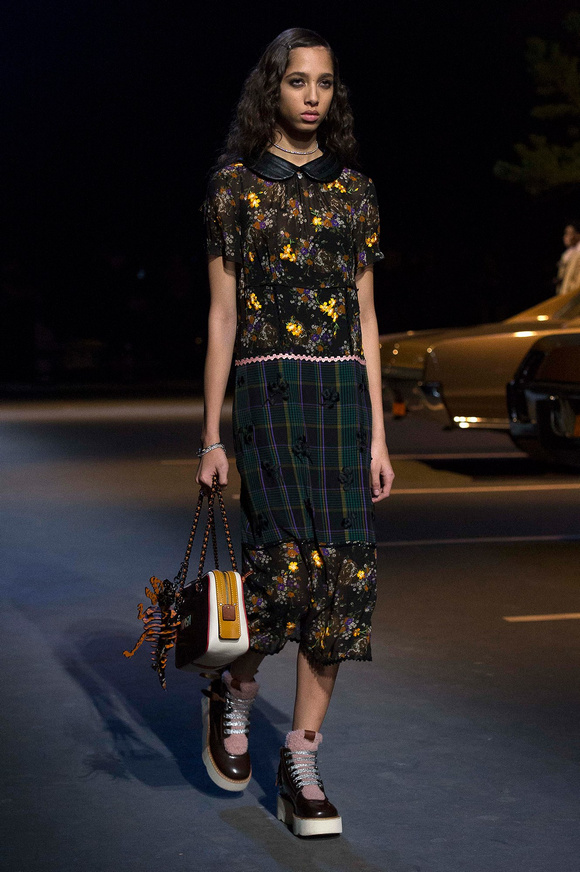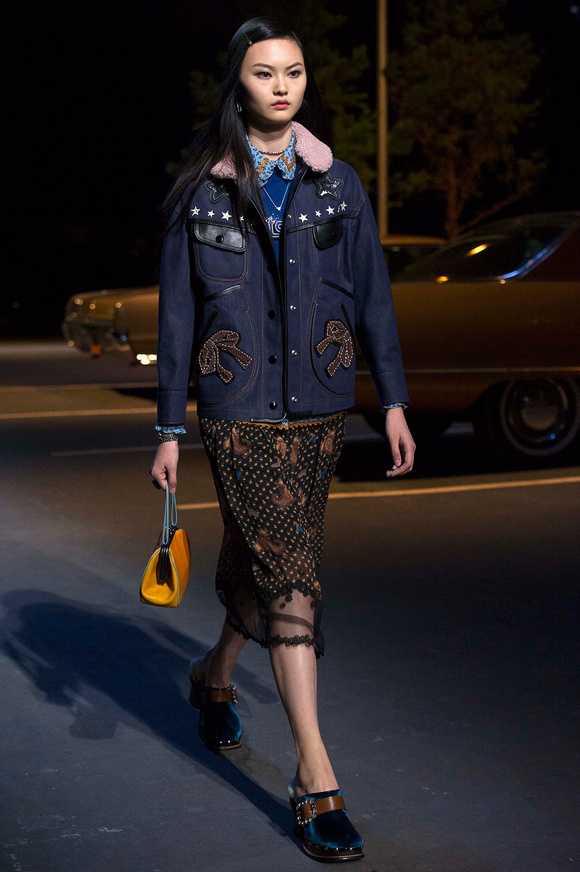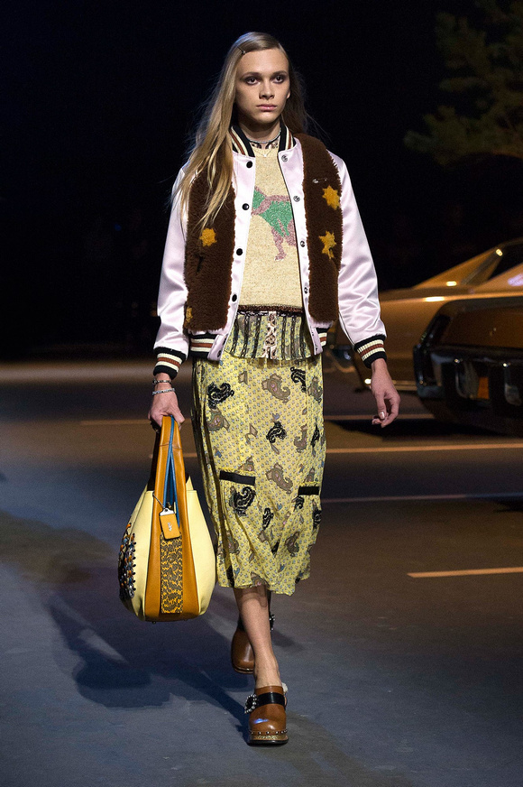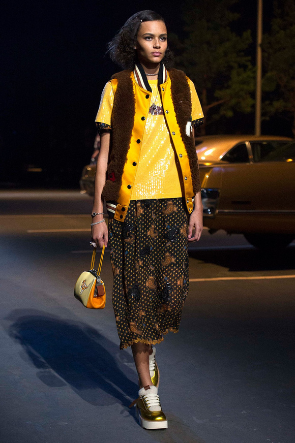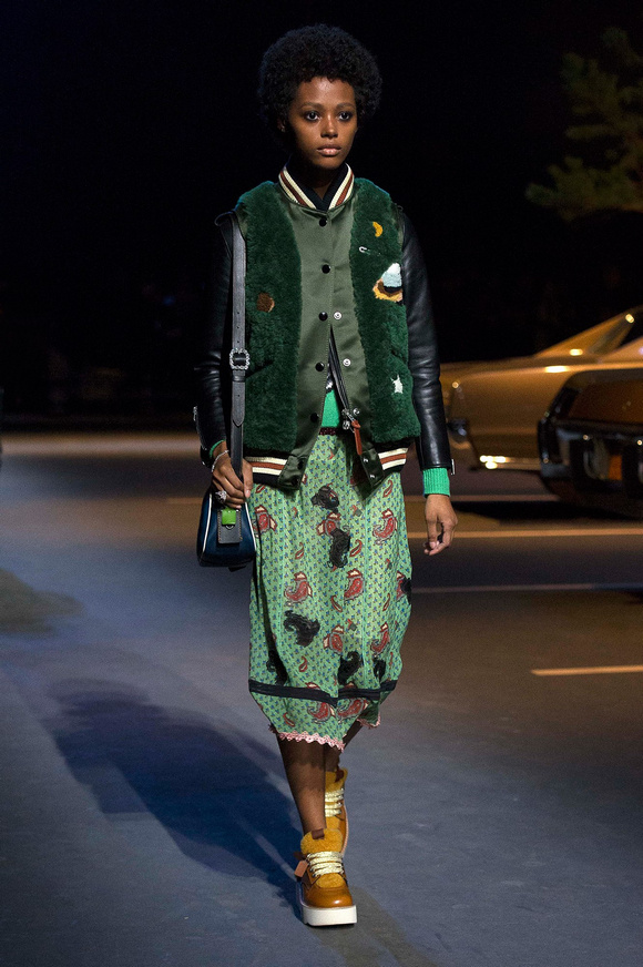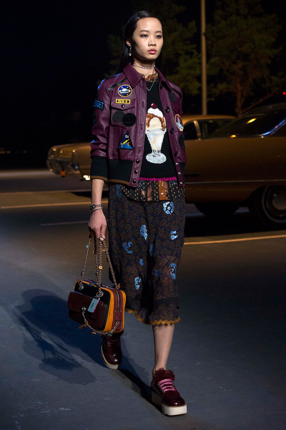 誰也不會想到,在Stuart Vevers來到Coach當(dāng)設(shè)計師前,我們要在一個寒冷的夜晚聚集在94碼頭看時裝發(fā)布會。 作為一個英國人,Vevers對美國有很深的喜愛和好奇。他的設(shè)計,每一次都找到了一種新的方法。一個季節(jié)是牛仔靴-穿著草原女孩,下一個季節(jié)是埃爾維斯的愛騎自行車的寶貝。前秋季是他最折衷混搭。迄今,他統(tǒng)一收集了我們團(tuán)結(jié)和樂觀的想法,反映了真實(shí)的的生活。