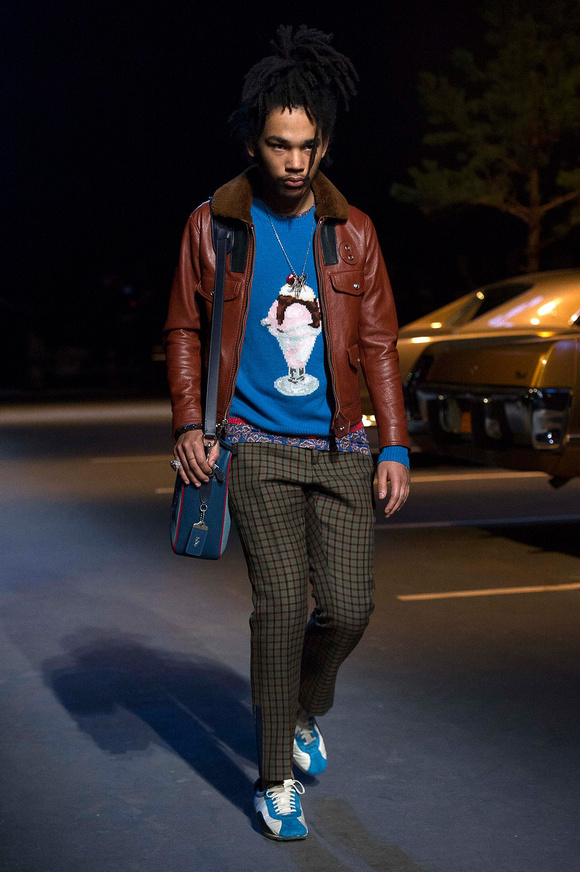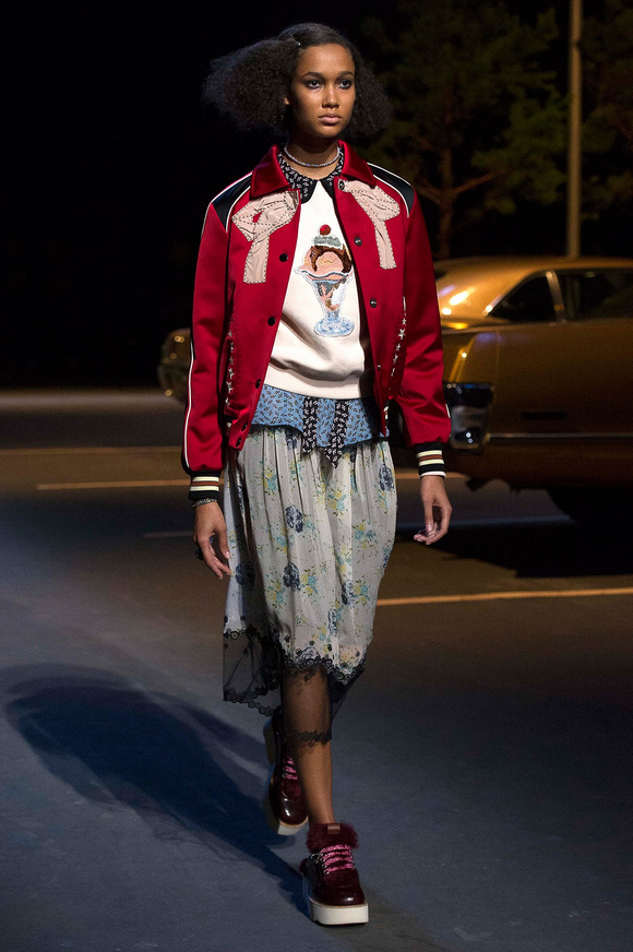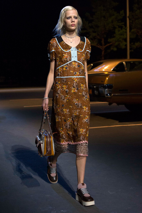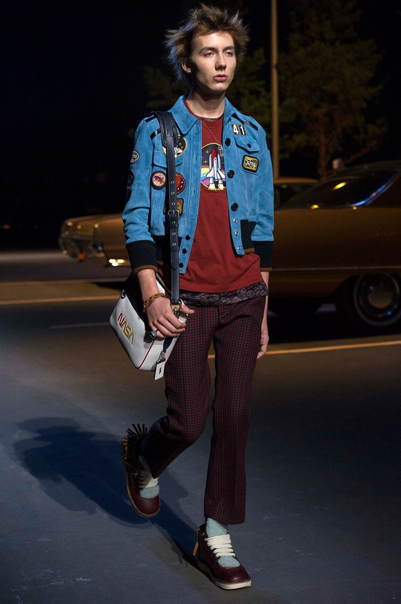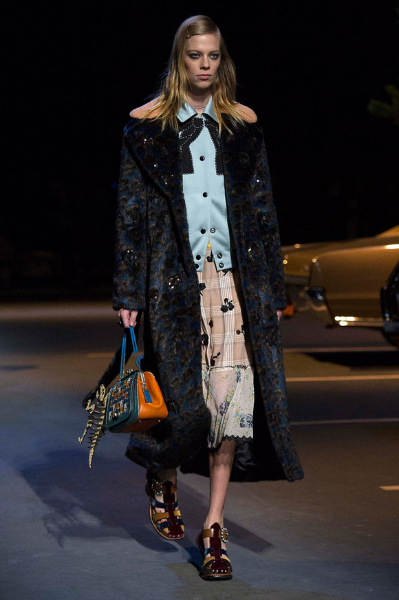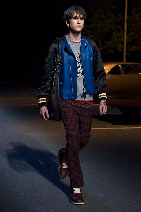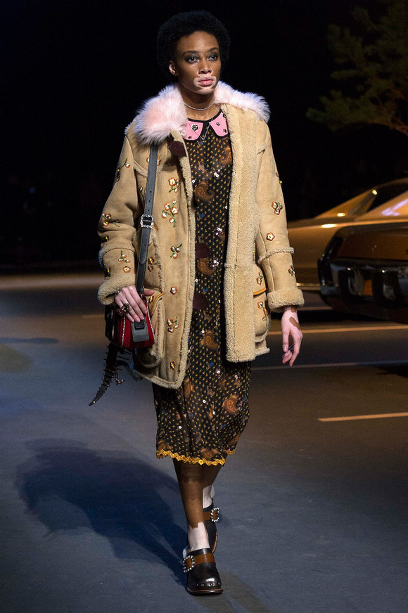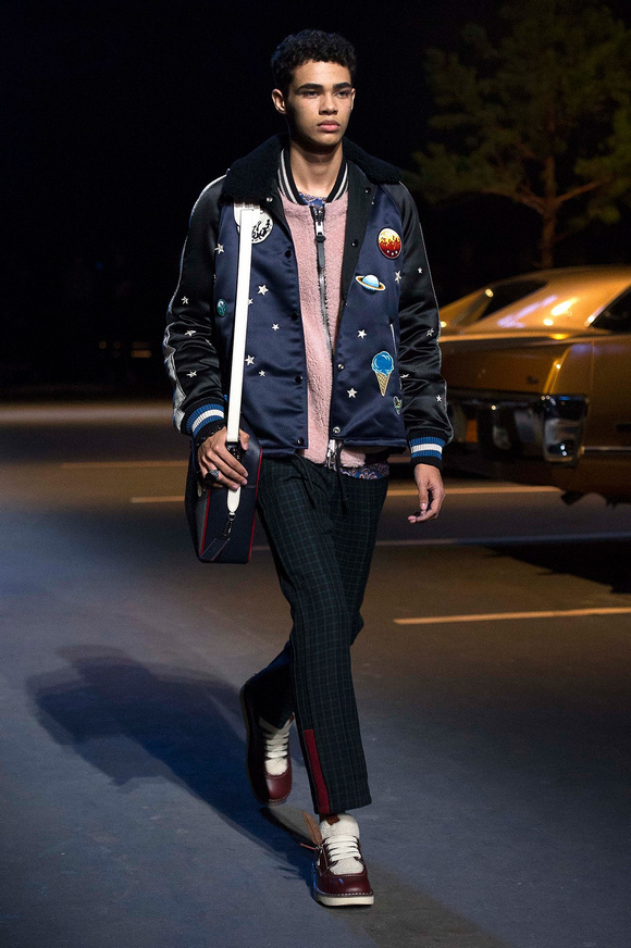 誰也不會想到,在Stuart Vevers來到Coach當(dāng)設(shè)計師前,我們要在一個寒冷的夜晚聚集在94碼頭看時裝發(fā)布會。 作為一個英國人,Vevers對美國有很深的喜愛和好奇。他的設(shè)計,每一次都找到了一種新的方法。一個季節(jié)是牛仔靴-穿著草原女孩,下一個季節(jié)是埃爾維斯的愛騎自行車的寶貝。前秋季是他最折衷混搭。迄今,他統(tǒng)一收集了我們團(tuán)結(jié)和樂觀的想法,反映了真實(shí)的的生活。
