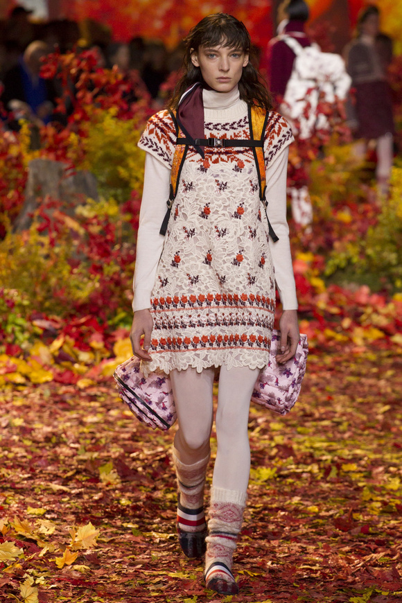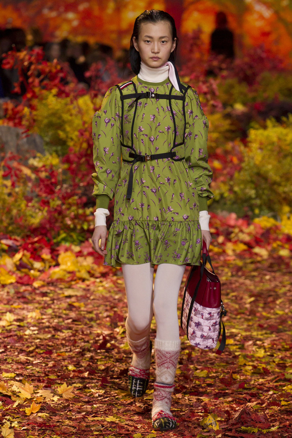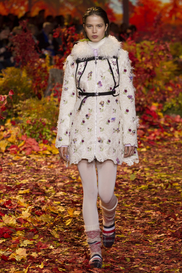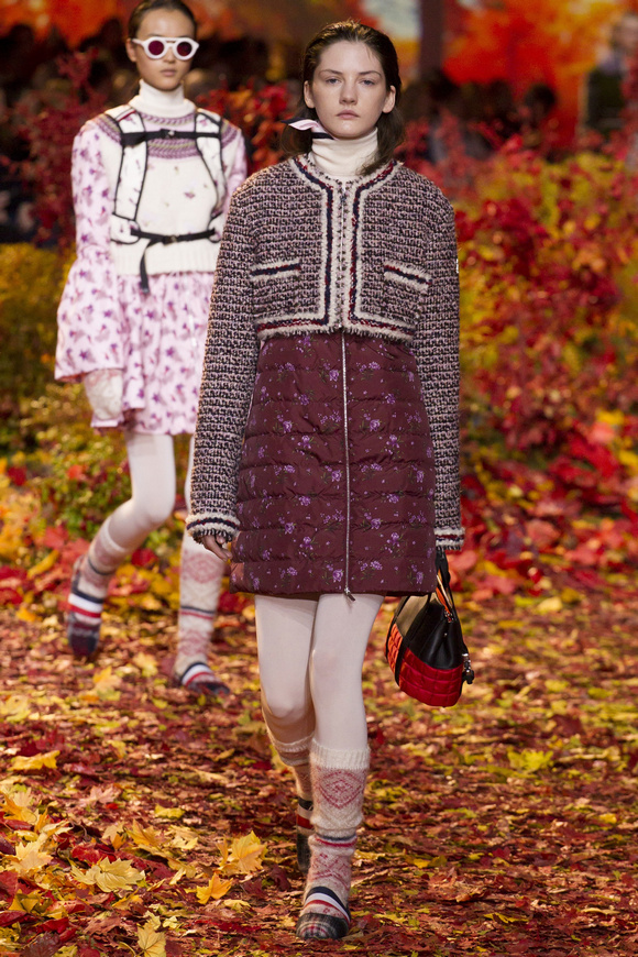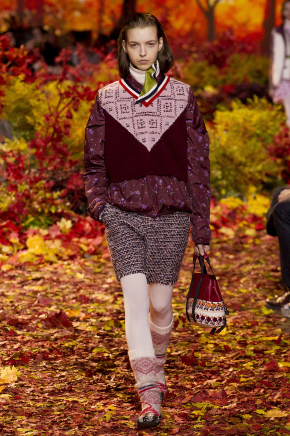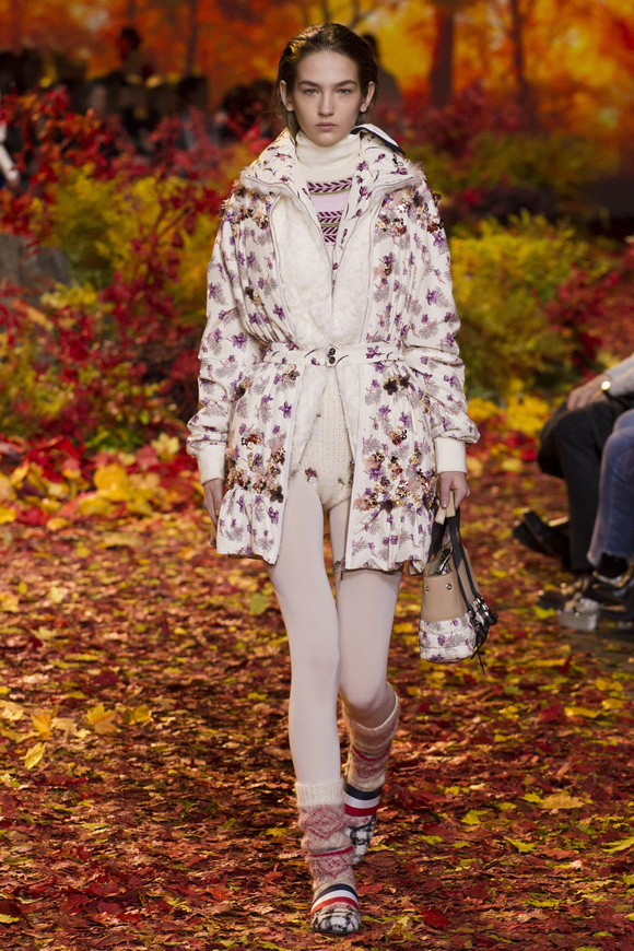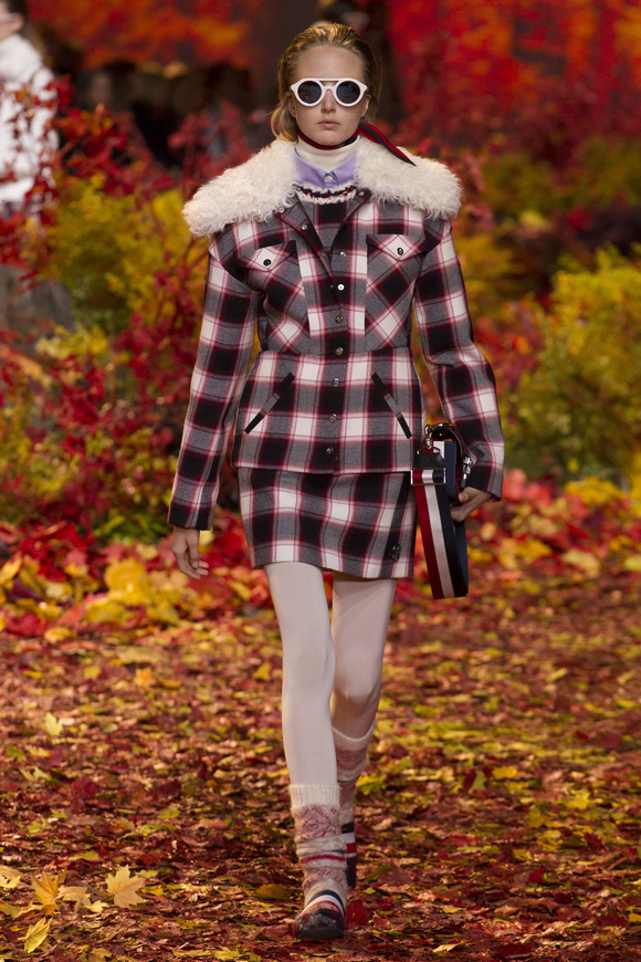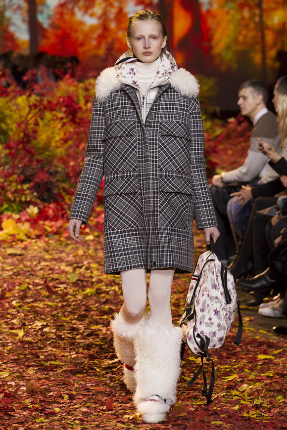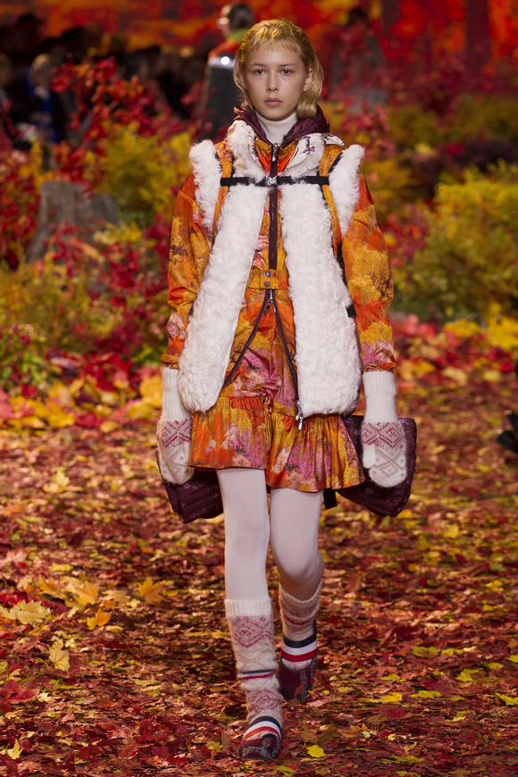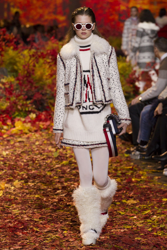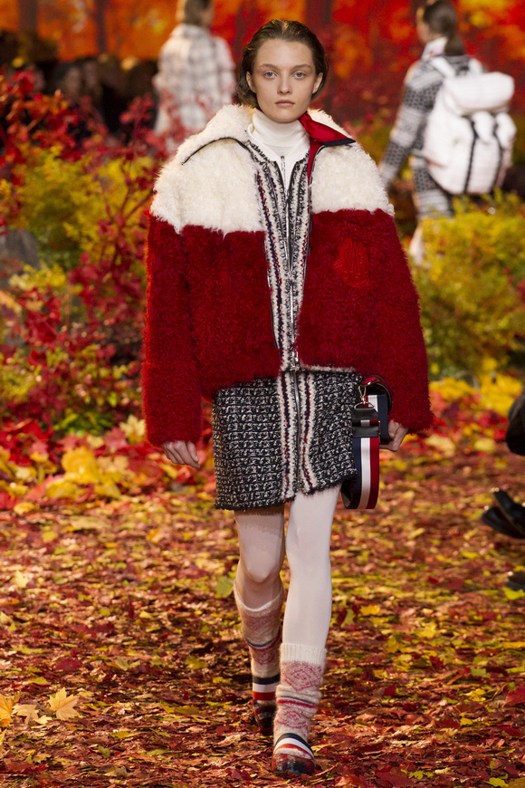 Moncler Gamme Rouge這一季的秀場(chǎng)布置成秋天的樹林,格子夾克、毛絨外套。一個(gè)理想的視覺(jué),看到有歐洲的痕跡,也有加拿大的風(fēng)格。