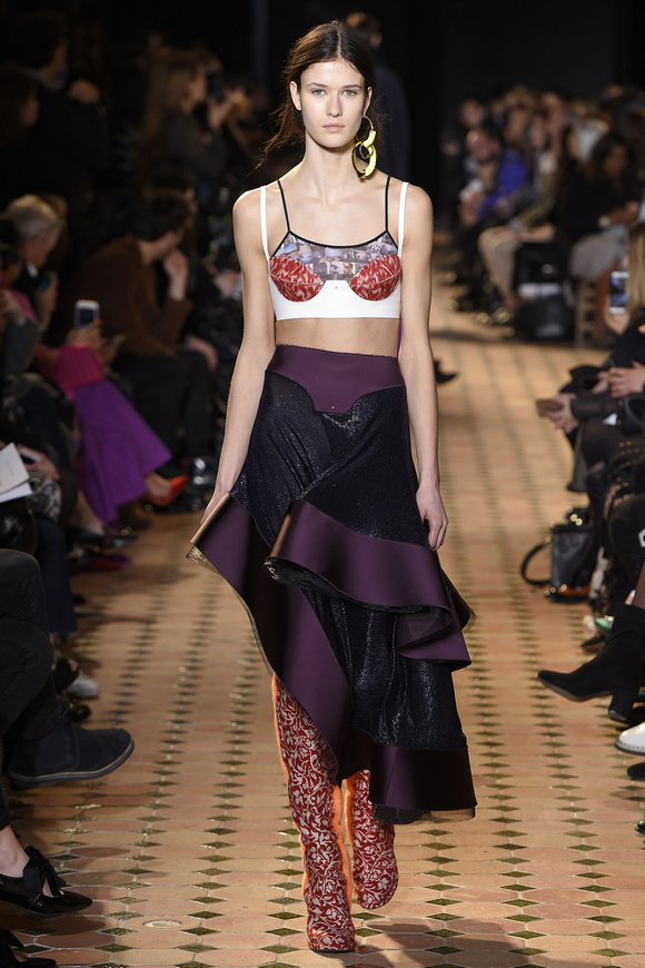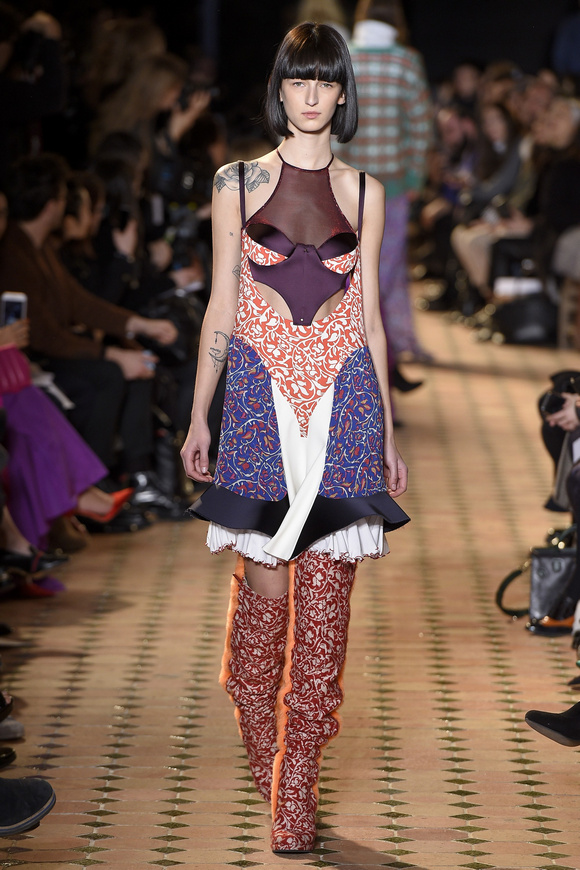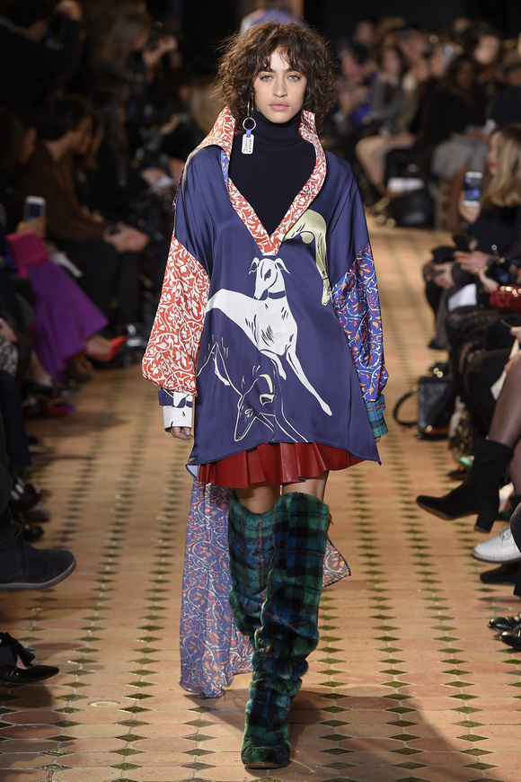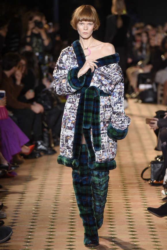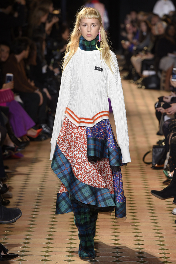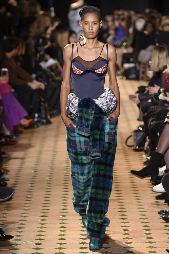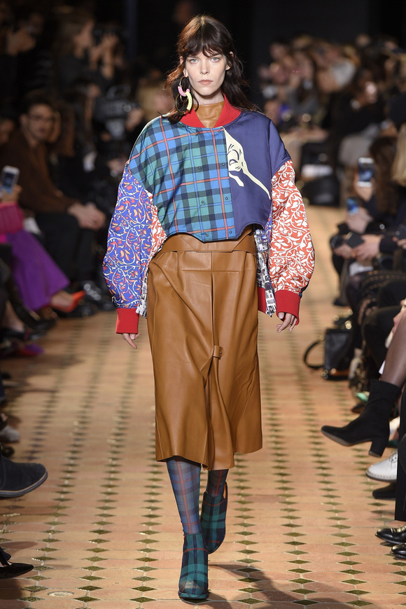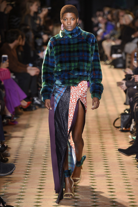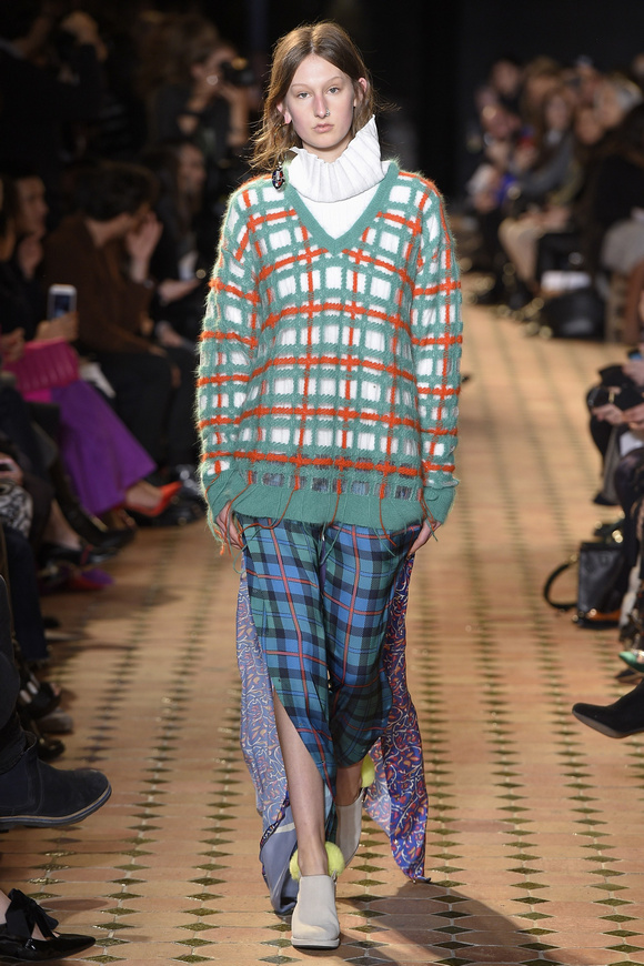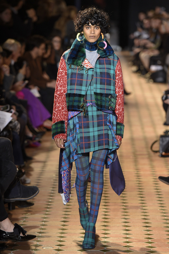 Esteban Cortazar這一季的最新設(shè)計(jì),大量運(yùn)用了格子,這可能源于他母親的嬰國血統(tǒng)。他這個(gè)賽季的女裝設(shè)計(jì)描述為ldquo;吉卜賽女人朋克rdquo;。