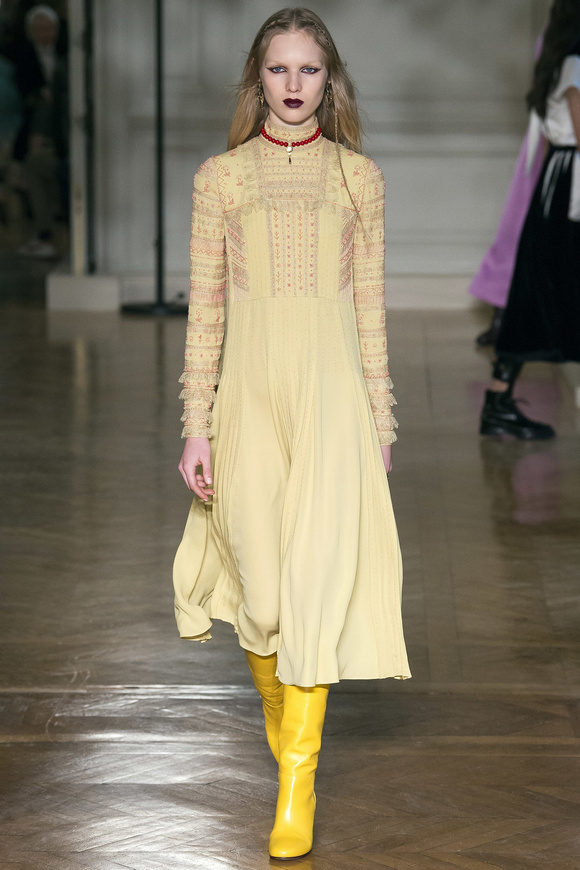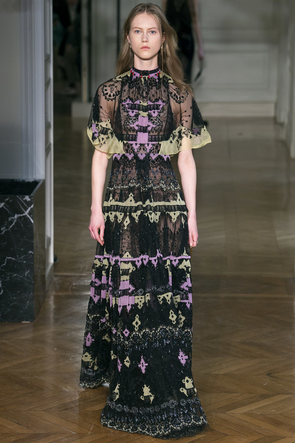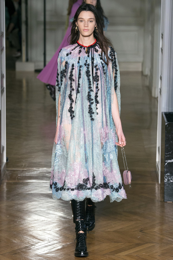 Valentino 2017 秋冬秀甫剛落幕,設計靈感來源于法國藝術家Nathalie De Pasquier的設計作品,結(jié)合維多利亞風格打造出奢華有趣的浪漫時尚,由創(chuàng)意總監(jiān) Pierpaolo Piccioli 操刀保持浪漫、唯美的桀騖風骨,用輕盈有質(zhì)感的面料加上薄紗、珠片或者鑲邊的碎花,賦予女性一種新的仙氣姿態(tài)。Valentino經(jīng)典的粉紅色還有紅色貫穿秀場,這次還出現(xiàn)了許多繽紛的冰淇淋色,像是奶黃、蜜橘、薄荷綠等,讓沉悶的秋冬多了點活潑的色彩。