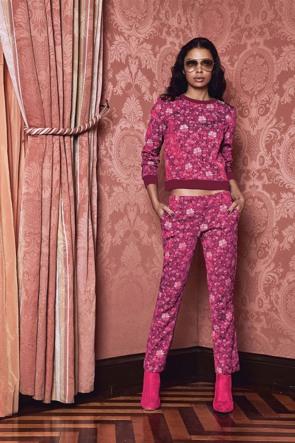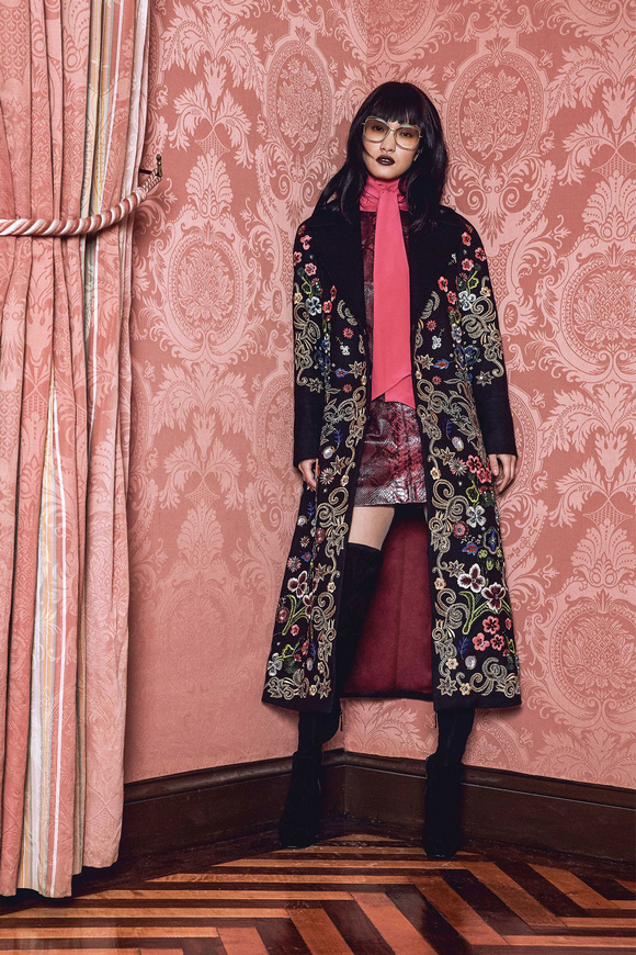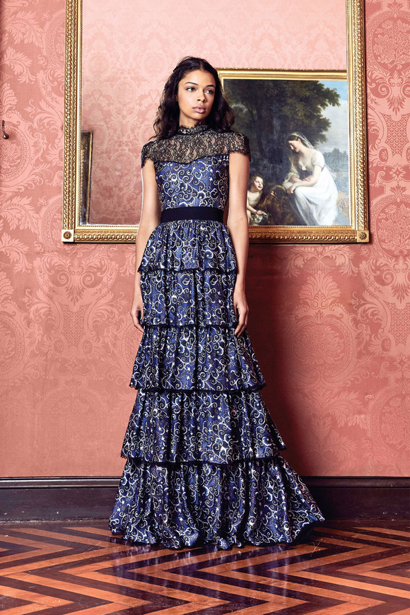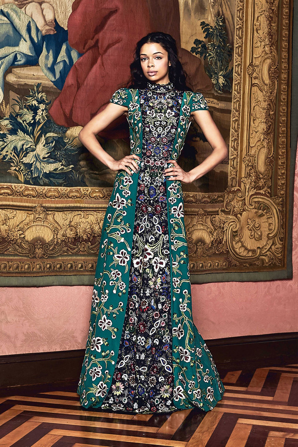 Alice Olivia 這一季的設(shè)計(jì)靈感,來源于她的設(shè)計(jì)師Stacey Bendet 收到的一份特殊的生日禮物,讓她這一季的設(shè)計(jì)充滿了印度皇室和意大利文藝復(fù)興的元素。關(guān)于這一季的作品,她還提出一句口號:ldquo;改變你看到的世界rdquo;。