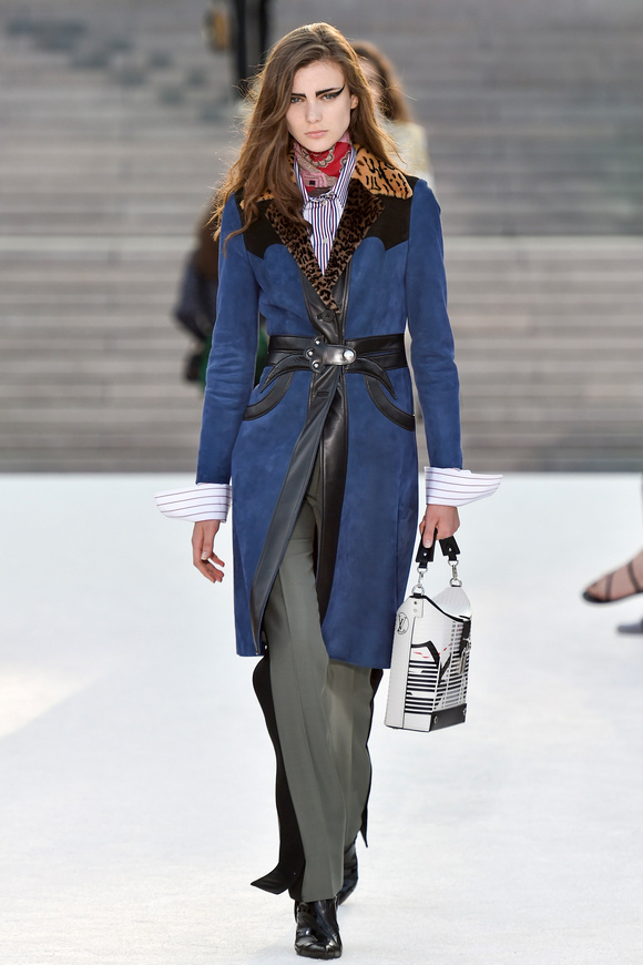 Louis Vuitton 路易斯威登2018休閑時裝這一季的發(fā)布會選在日本的京都舉行,設(shè)計師NNicolas在這里累積了大量的粉絲。這一季的設(shè)計,將日本的武士盔甲、黑澤明的顏色、歌舞伎化妝、傳統(tǒng)版畫的漁民和70年代晦澀的日本電影系列的元素都混雜在一起。